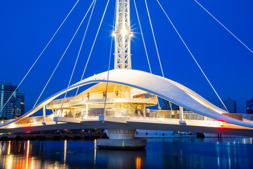 高雄港大港橋長110公尺,橋寬5到11公尺不等,可供550人及自行車同時通行,為台灣首座水平旋轉橋、也是亞洲最長跨港旋轉橋,以貝殼和海豚等作為設計概念。 是串聯亞洲新灣區的最後一哩關鍵工程,藉由高雄輕軌連結高雄港大港橋,將把整個新灣區的重要公共建設、高港棧庫群、駁二藝術特區串接在一起,形成一個龐大的觀光廊道。