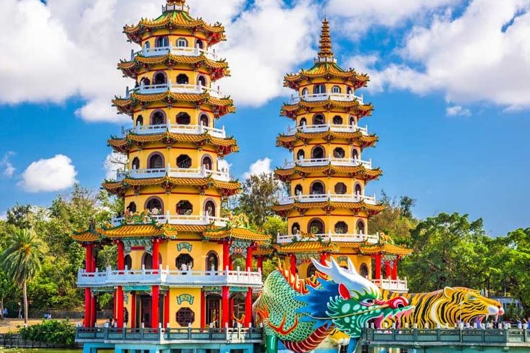 位於左營區的蓮池潭,南鄰龜山、北倚半屏山,清朝時期因潭中遍植荷花,每逢夏季清香四溢,素有「泮水荷香」美譽,成為清代的鳳山八景之一;蓮池潭畔的指標性建築「龍虎塔」,讓人感受到東方宗教文化的震撼,曾被美國有線電視CNN特別推薦,是高雄市最具傳統宗教色彩的風景區之一。